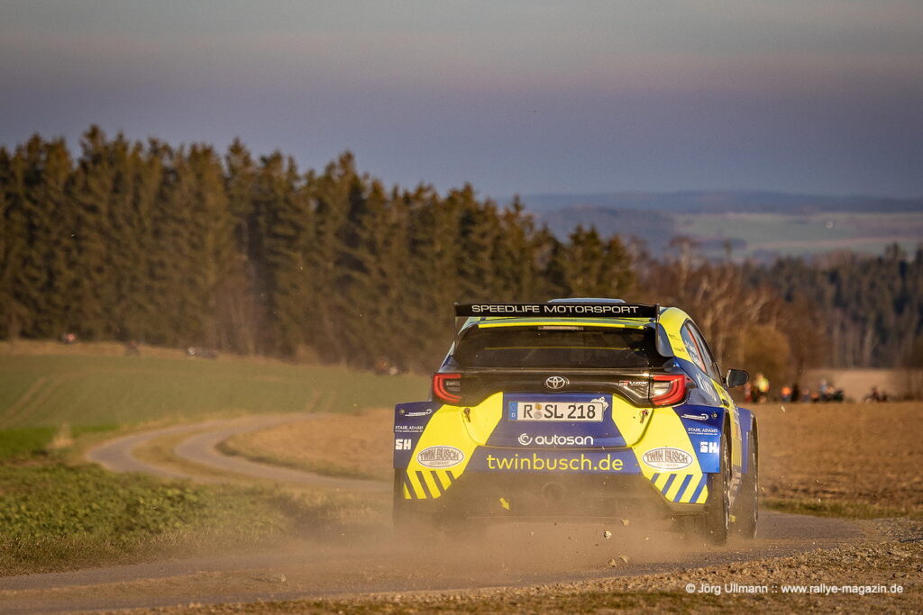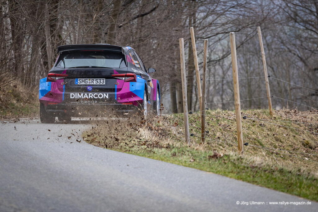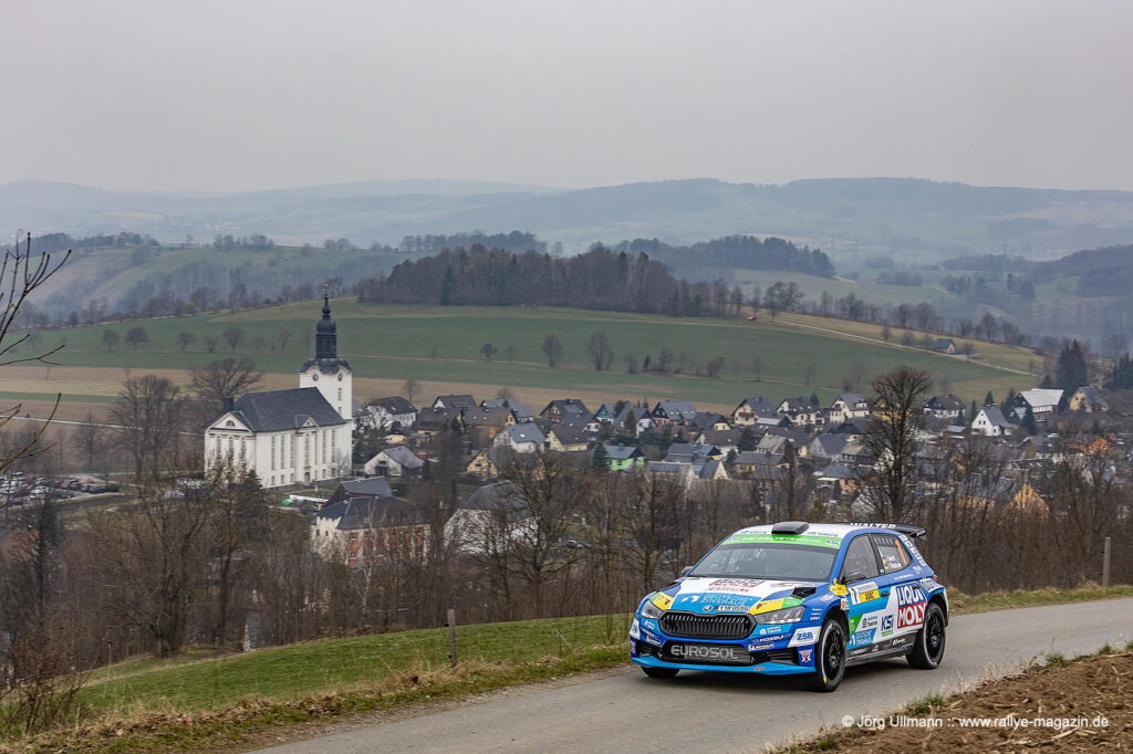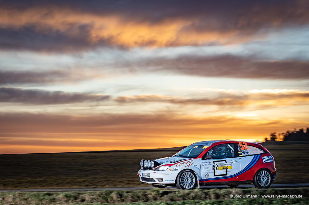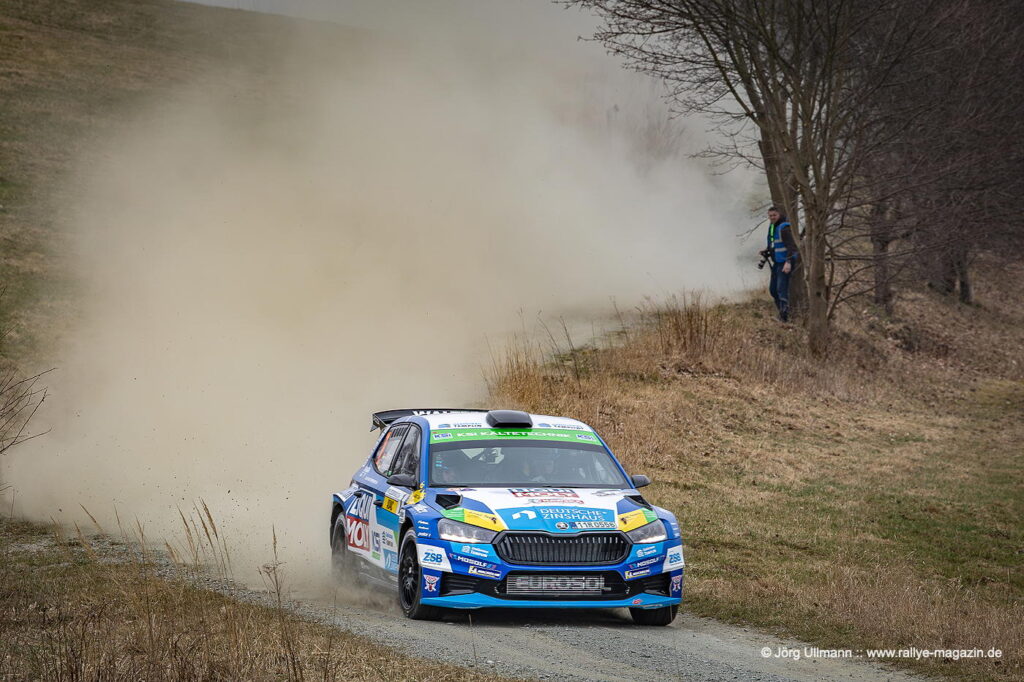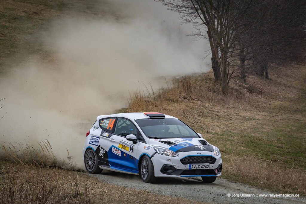 Unter den 13 Teams aus der 2-Liter-Klasse legt der 22-jährige Yannik Keller im Ford Fiesta ST einen fulminanten Start hin: Auf der Gelenau-Prüfung – mit den berüchtigten Plattenwegen – nimmt er dem Routinier Bernd Michel (Opel Kadett GSi) nicht weniger als 16 Sekunden ab und baut mit weiteren Bestzeiten den Vorsprung nach der ersten Etappe auf 1:12 Minuten aus. Am Samstag erzielt Michel zwar mehrere Bestzeiten, doch Keller und seine Copilotin Lilly Kunz fahren mit eindrucksvoller Beständigkeit zum Klassensieg. Das bedeutet für sie Platz 2 in der ADMV-Meisterschaft und die Führung sowohl in der U25-Wertung als auch in der Sächsischen Meisterschaft.