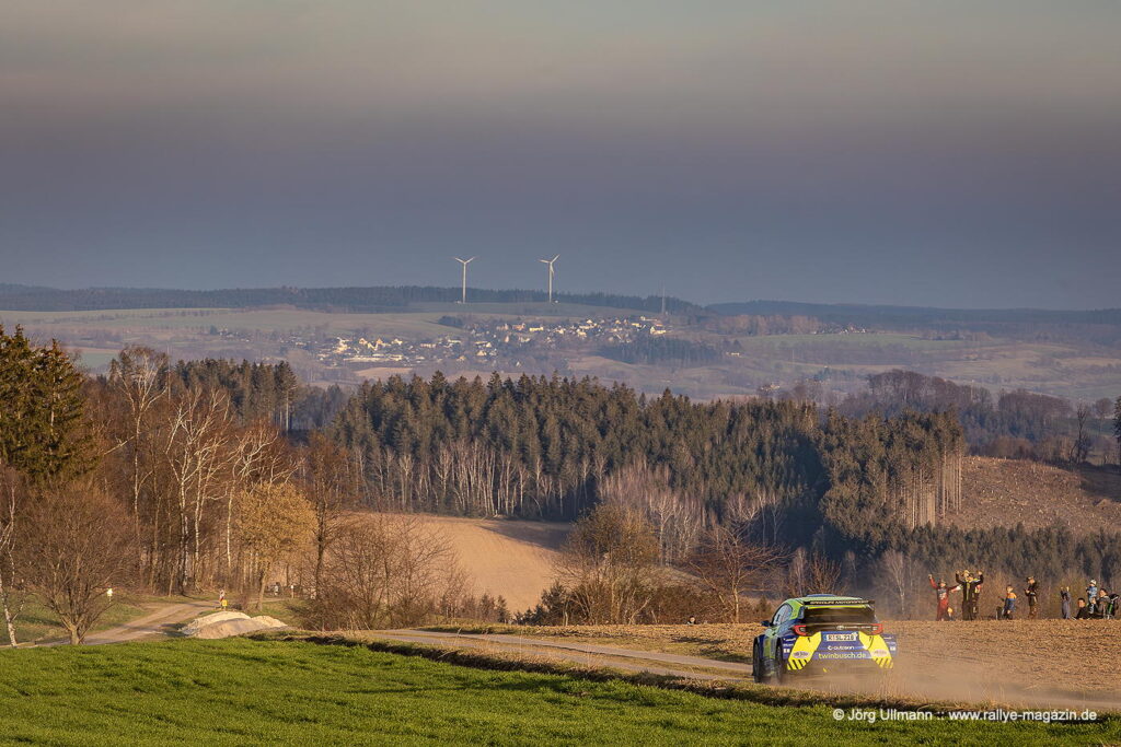 Das Dorf Wildbach wird in voller Länge bei der Power Stage durchfahren und auf der abschließenden Prüfung herrscht Häuserkampf-Atmosphäre in Beutha, Grüna, Oberdorf und Mitteldorf. Und weil die Bundesstraße 169 zwischen Stollberg und Aue wegen Bauarbeiten ohnehin gesperrt ist, kann am Freitagabend als WP 2 und 4 ein Rundkurs auf der B169 mitten durch den Ort Gablenz stattfinden. Mit Julius Tannert, Philip Geipel, Carsten Mohe und Sepp Wiegand kämpfen vier populäre Lokalmatadore um den Sieg – klar, dass rund zehntausend Fans die Zuschauerzonen stürmen und ihre Helden – manchmal auch zu überschwänglich – mit Bier, Böllern und Feuerwerk feiern. Die Tradition lebt im Erzgebirge!