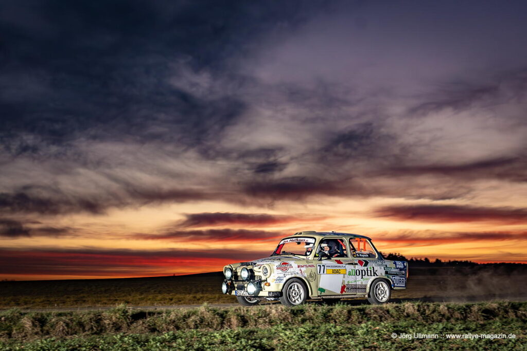 Robby Fechner und Florian Pitzk hätten die Tabellenführung übernehmen können, doch ein defektes Differenzial am Mitsubishi Evo 10 beschert ihnen am Freitagabend eine Maximalzeit, so dass der dreimalige Histo-Champion Andreas Dahms im Porsche 996 GT3 die Klasse NC1 vor demn Dresdner Subaru-Team Markus und Renee Roch gewinnt. Dahms‘ Nachfolger Walter Gromöller und sein einheimischer Co René Meier haben im Opel Ascona 400 in der 3-Liter-Klasse immer die Nase knapp vor dem BMW M3 von Ron Schumann und Claudia Harloff, die allerdings in Sichtweite des Ziels ausfallen. Dadurch rutschen René Kunze und Niklas Haase im BMW 325 Touring auf Platz 2 in der Klasse und Platz 3 in der ADMV-Meisterschaft.