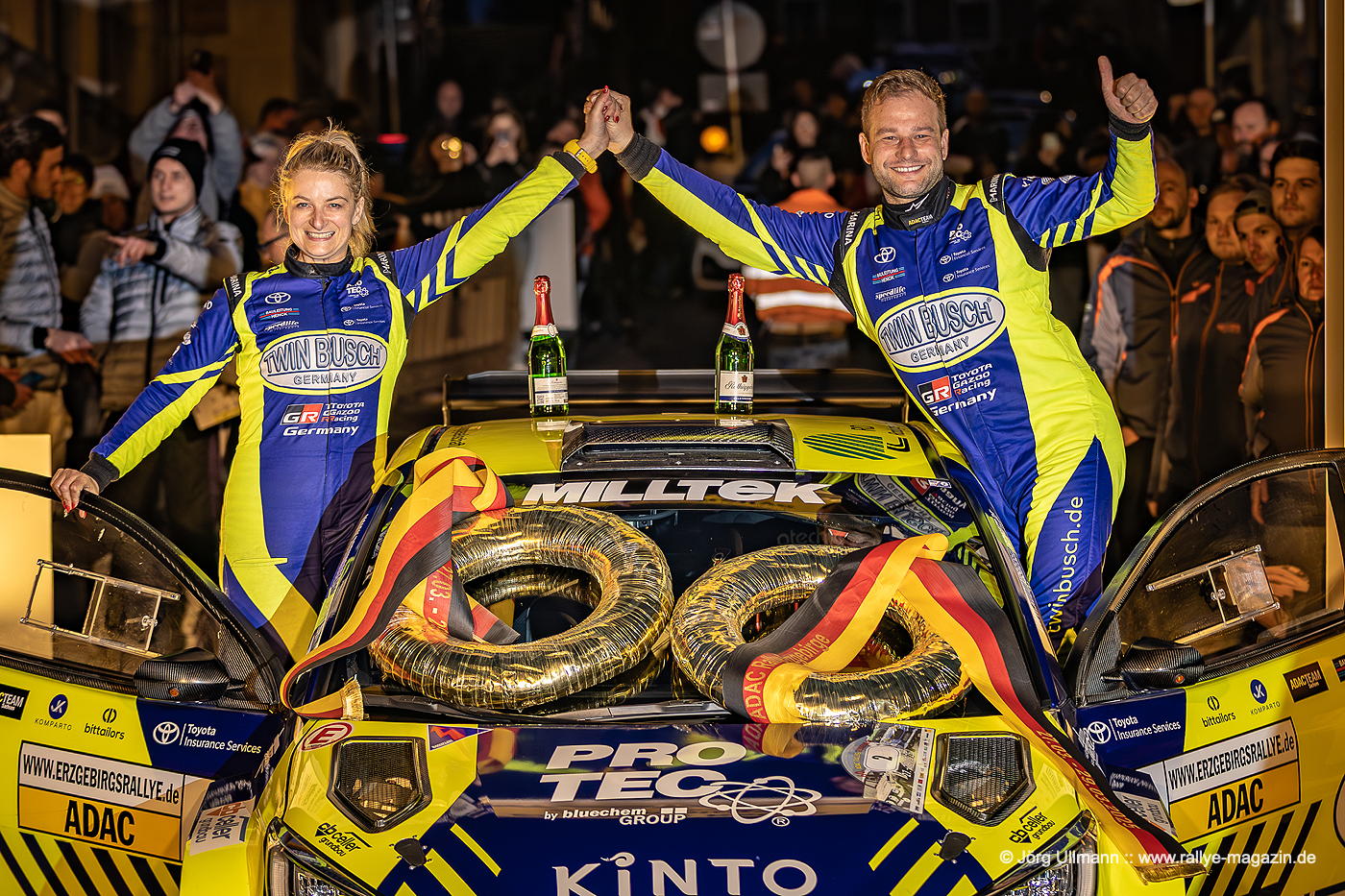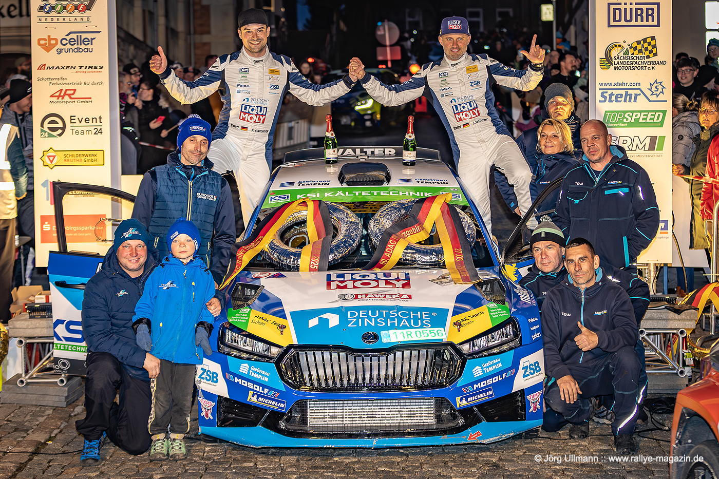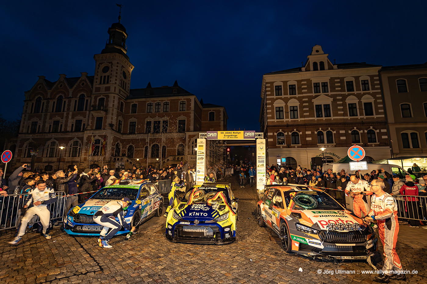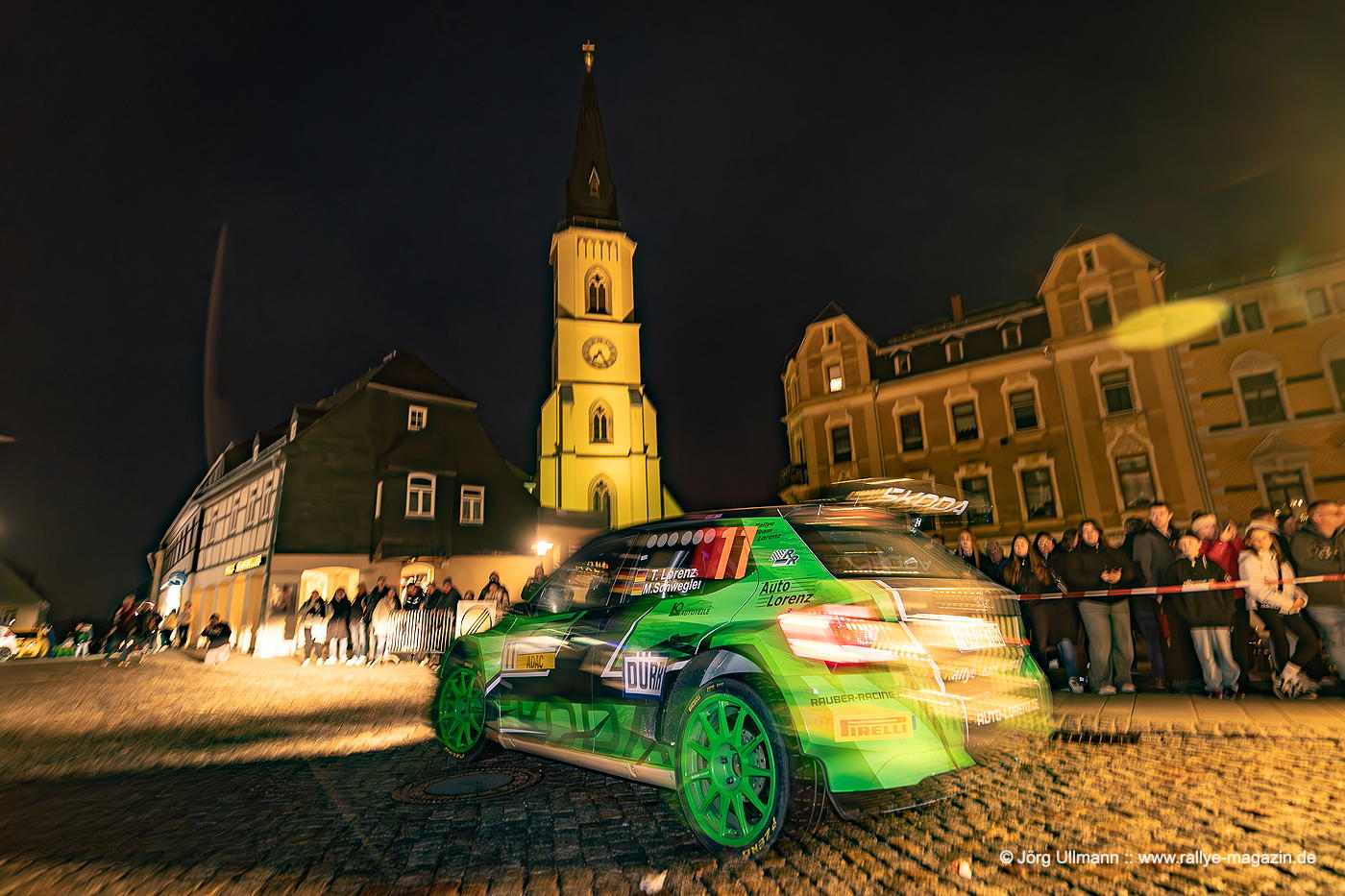 Das Dorf Wildbach wird in voller Länge bei der Power Stage durchfahren und auf der abschließenden Prüfung herrscht Häuserkampf-Atmosphäre in Beutha, Grüna, Oberdorf und Mitteldorf. Und weil die Bundesstraße 169 zwischen Stollberg und Aue wegen Bauarbeiten ohnehin gesperrt ist, kann am Freitagabend als WP 2 und 4 ein Rundkurs auf der B169 mitten durch den Ort Gablenz stattfinden. Mit Julius Tannert, Philip Geipel, Carsten Mohe und Sepp Wiegand kämpfen vier populäre Lokalmatadore um den Sieg – klar, dass rund zehntausend Fans die Zuschauerzonen stürmen und ihre Helden – manchmal auch zu überschwänglich – mit Bier, Böllern und Feuerwerk feiern. Die Tradition lebt im Erzgebirge!