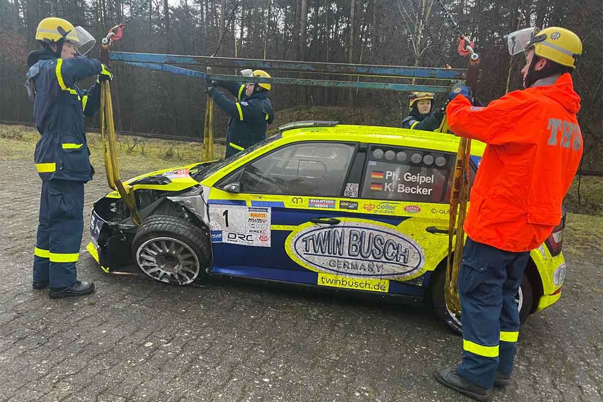 Die Generalprobe verlief nicht wie geplant. Auf der vorletzten Prüfung der Rallye „Buten un`Binnen“ rutschten Philip Geipel und Co Katrin Becker mit ihrem Skoda Fabia Rally2 Evo von der Strecke und beschädigten das Auto stark – nur wenige Tage vor dem Saisonstart in der Deutschen Rallye Meisterschaft.