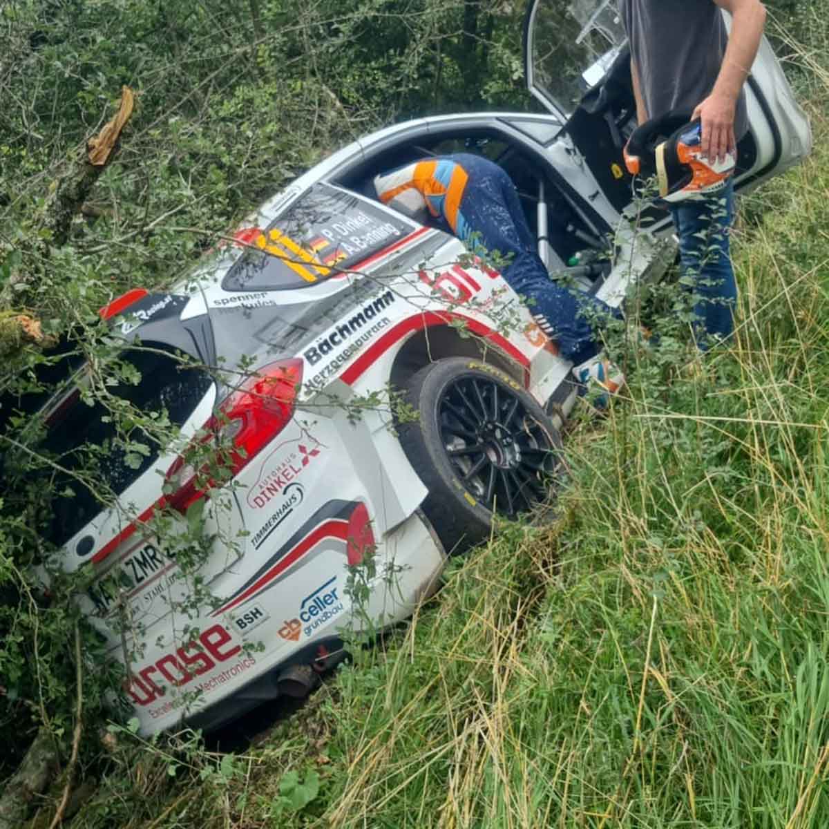Pech hatte Patrik Dinkel, der es im Ford Fiesta Rallye zwischenzeitlich bis auf Platz sieben brachte. „Auf der letzten Prüfung der WP 10 bin ich aber leider bei einer eher langsamen Rechts Drei Kurve auf Split gekommen und in der Folge über eine Böschung gerutscht. Von dort gab es aber keine Möglichkeit mehr, wieder auf die Straße zu kommen.“