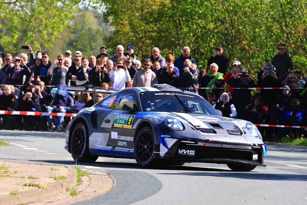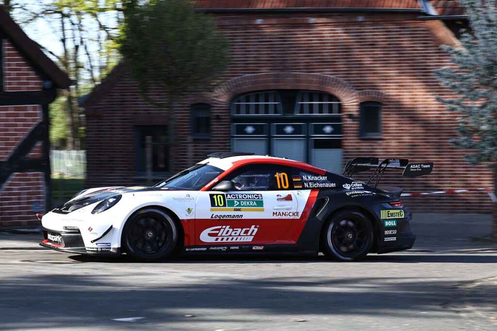 Rang vier ging an Nico Knacker und Beifahrer Nico Eichenauer, die beim ersten Einsatz im Porsche 911 Rally GT gleich drei Bestzeiten fuhren. „Ich weiß gar nicht, was ich sagen soll“, sagte Knacker. „Das Auto macht so viel Spaß und dann auch noch vor heimischem Publikum solch ein Ergebnis herauszufahren, ist einfach Wahnsinn.“