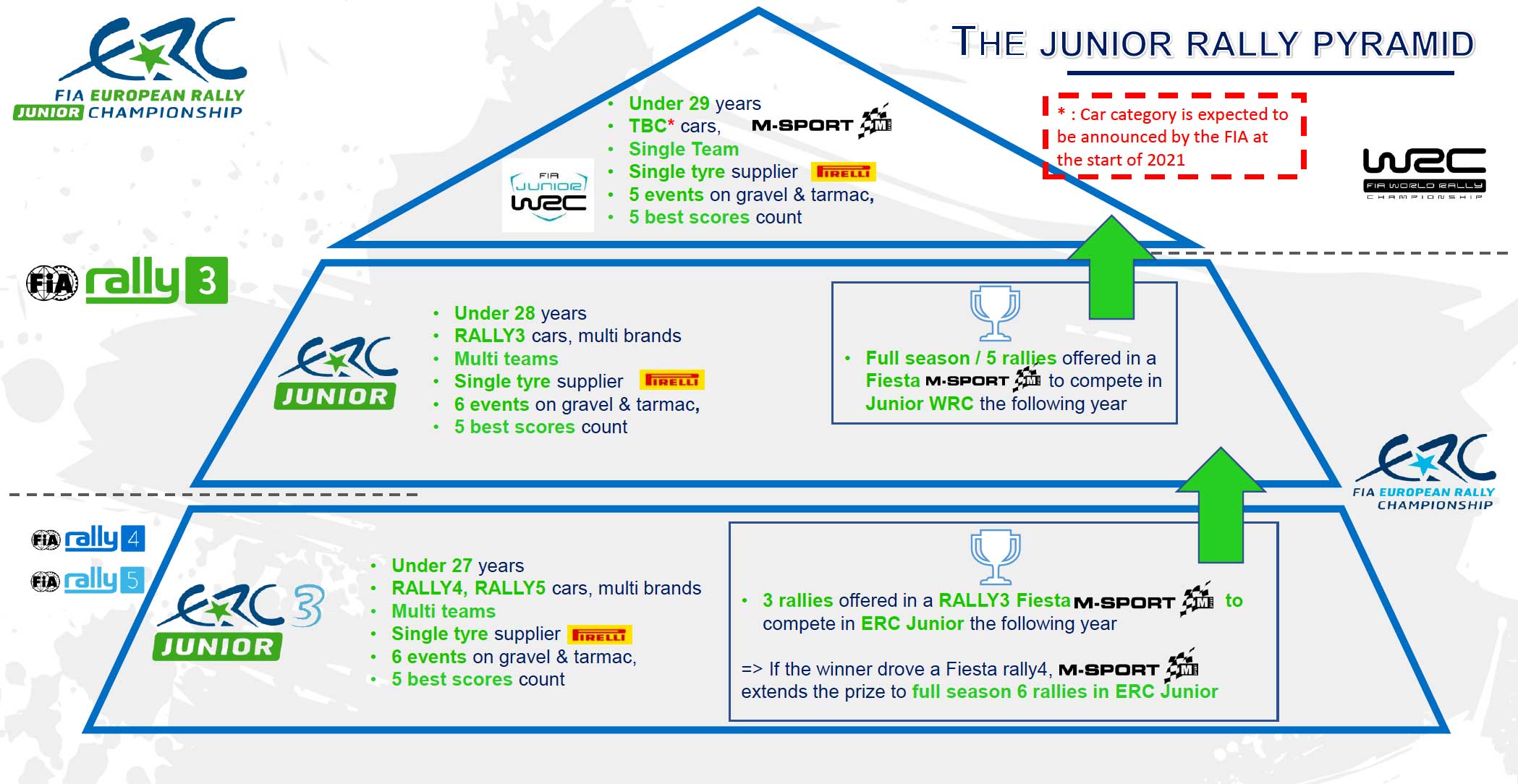 „Jede Initiative, die einen klaren Weg zwischen Europa- und Weltmeisterschaft bietet, ist höchst willkommen“, so FIA Rallye-Direktor Yves Matton. „Es ist wichtig für die Zukunft unseres Sports, dass junge Fahrer die Möglichkeiten bekommen, internationale Erfahrungen mit einem Allradler zu sammeln.“