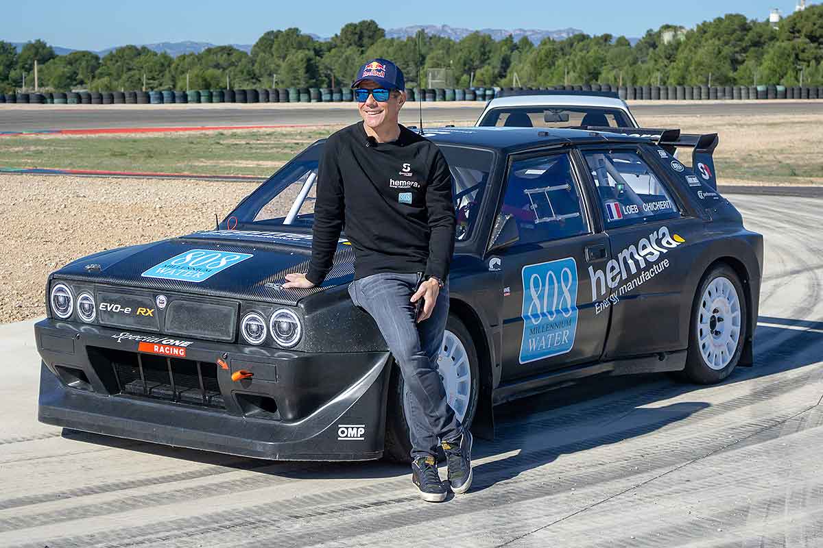 Die Idee, die klassische Lancia Delta Karosse über den Einheits-Elektro-Antrieb zu stülpen, hatte im Vorjahr Guerlain Chicherit. „Als er mich das erste Mal darauf ansprach, eine Rallycross-Saison mit ihm zu bestreiten, dachte ich, er sei verrückt! Dann habe ich das Auto im vergangenen Dezember ausprobiert und war sofort von seinen dynamischen Qualitäten überzeugt“, so Loeb.