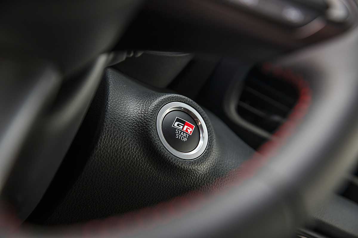 Im Innenraum setzt sich die dynamische Ausrichtung fort. Die Sportsitze bieten optimalen Seitenhalt und lassen sich bestens auf die individuellen Bedürfnisse einstellen. Auf der Rückbank spendierten die Toyota-Entwickler dem schnellsten Yaris Isofix-Halterungen, damit auch der Nachwuchs die fahrdynamischen Eigenschaften des kleinen Sportlers erleben können.