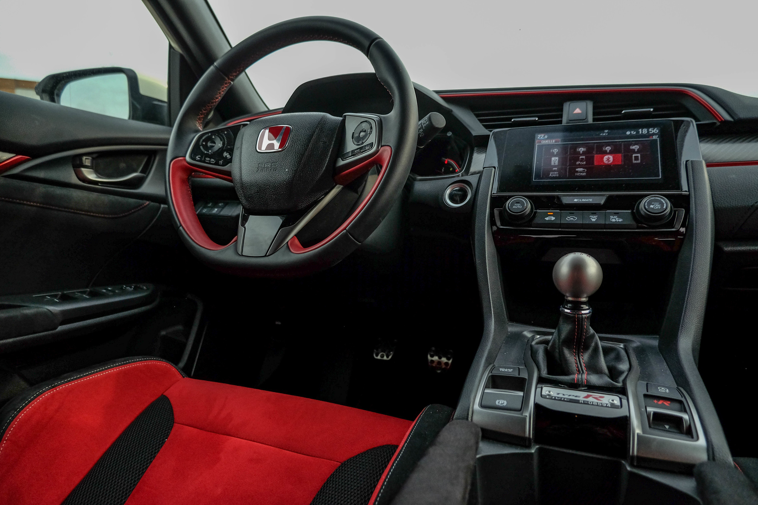 So profitiert der Civic einerseits von dem Andersdenken der Japaner, das sich in exklusiven Tasten, Schaltern und Bedienelementen zeigt. Andererseits erinnern die Lenkradtasten an einen Premium-Waschautomaten. Da ist man als Europäer, der die immer gleichen Symbole und Tasten gewohnt ist, schnell aus der Routine gerissen. Auch der 7-Zoll-Honda-Connect-Touchscreen hält Überraschungen bereit, die das Leben kompliziert gestalten. Wichtige Funktionen, die man auch mit Kurzwahltasten hätte lösen können, finden sich nur im Menü. So ist ein Umdenken bei dem ansonsten schön gestalteten Infotainmentsystem mit Sprachsteuerung gefordert. Abstriche gegenüber starken Konkurrenten wie dem VW Golf R leistet sich der Honda in den Dienstwagen-Disziplinen Komfort, Bedienung und Geräuschisolation.