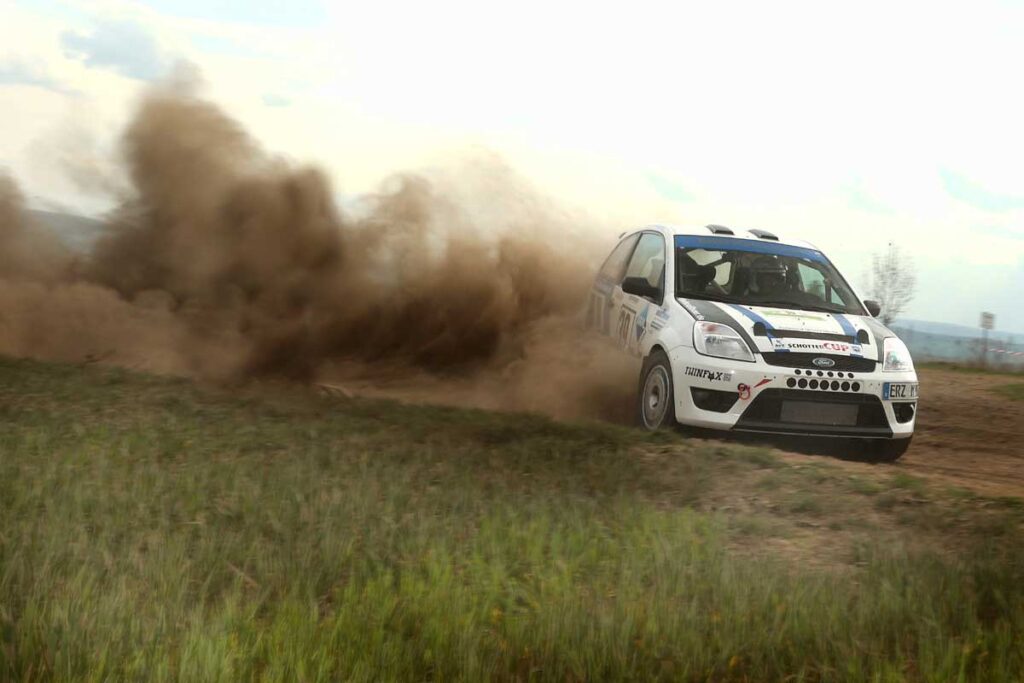 Der 25-jährige Finne scheucht den alten Evo 9 von Petri Reinikainen (der im Fiesta R5 wegen schwankenden Benzindrucks keine Rolle spielt) in großartiger Manier über den Schotter, fährt auf Rang 4 und nimmt dem zweitplatzierten Raphael Ramonat eine knappe Minute ab. Rudi und Simone Weileder werden Dritte in der NC1 und Achte insgesamt – genau wie beim Auftakt in Wittenberg.