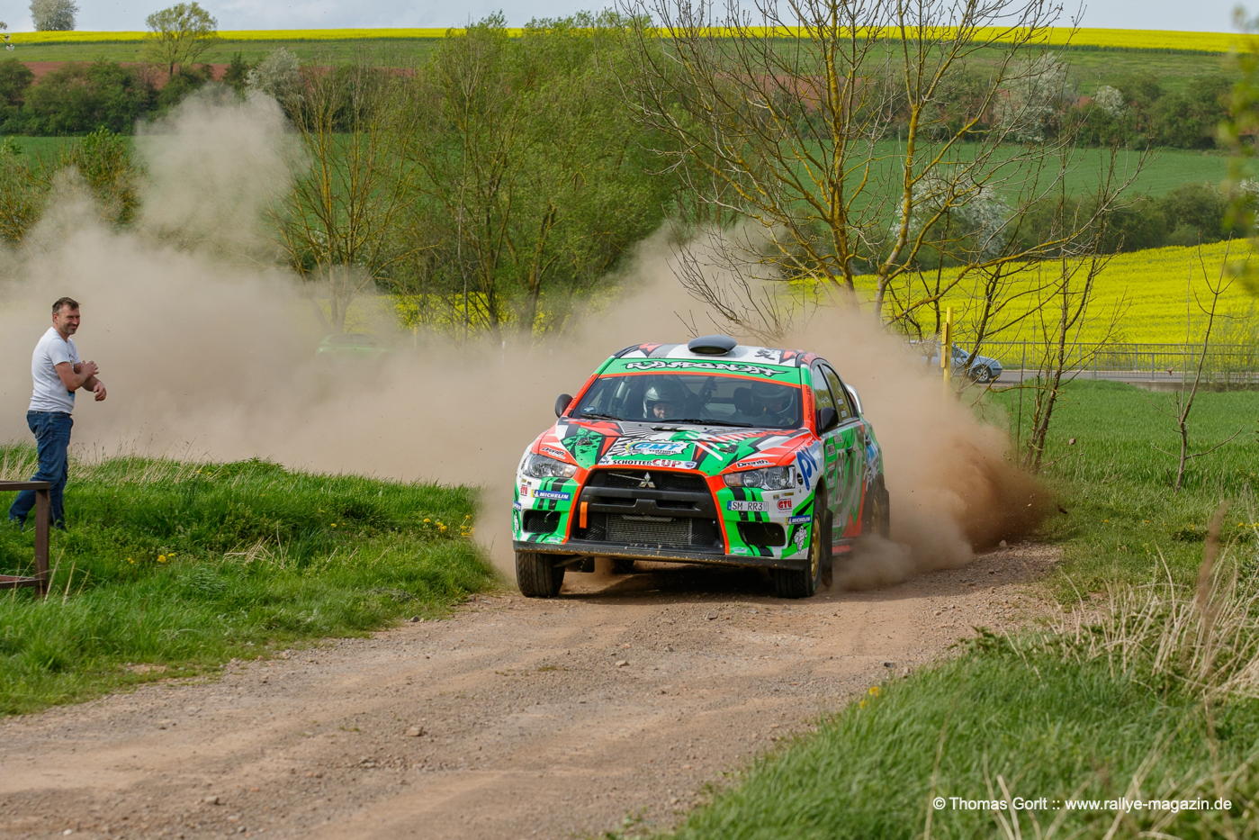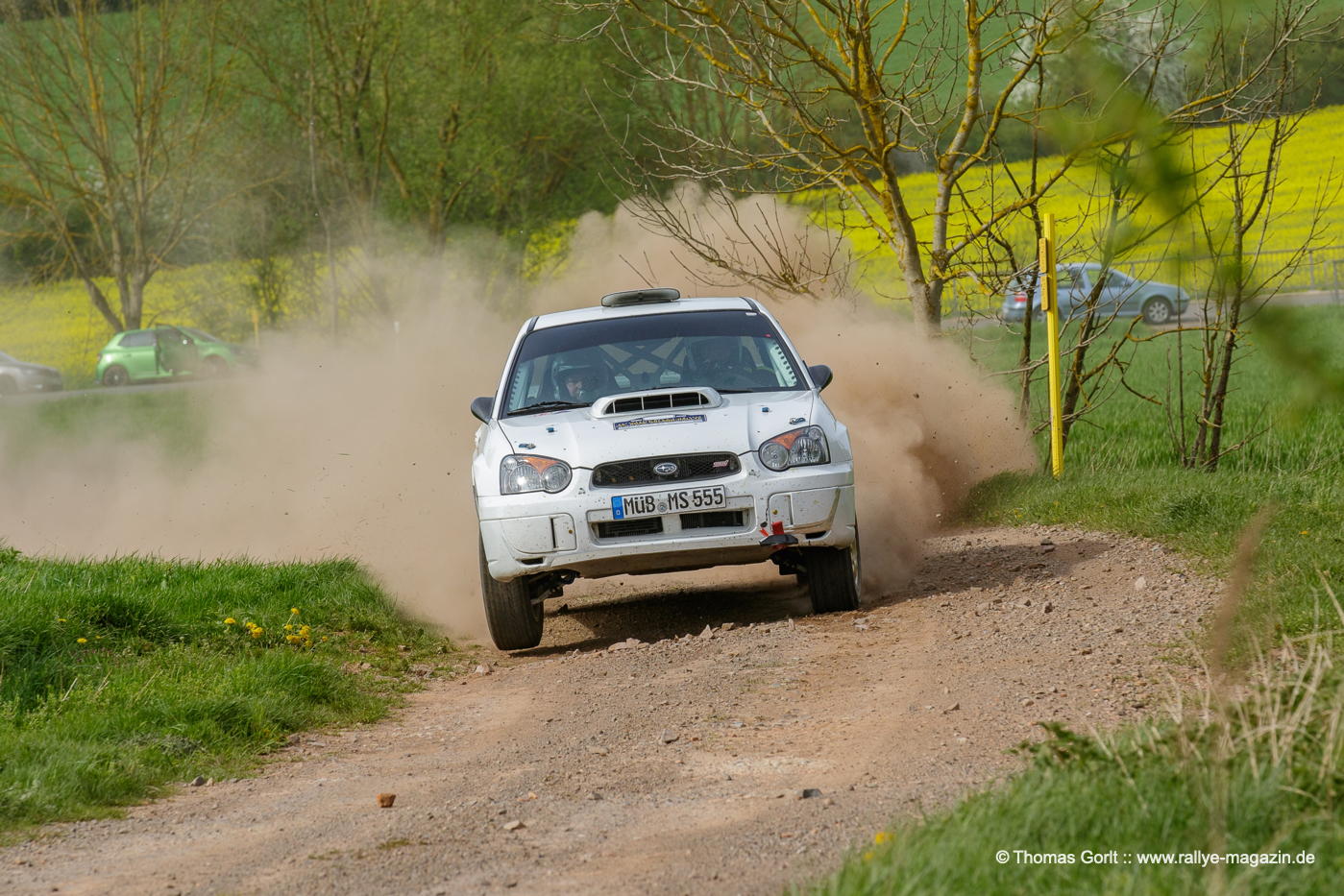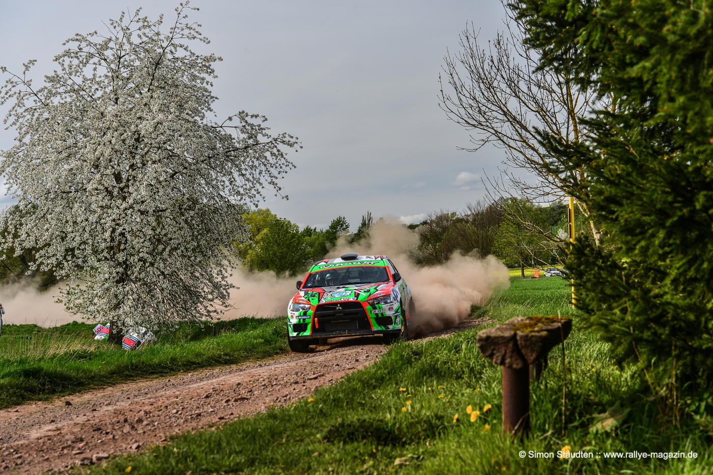 Nach zwei verregneten Ausgaben zeigt sich die 52. ADAC-Roland-Rallye von ihrer besten Seite – mit frischem Grün auf Wiesen und Äckern, blühenden Obstbäumen und knallgelben Rapsfeldern. 66 Teams starten zu den zwei Schleifen mit je sechs Prüfungen über 58 Kilometer. 50% Schotter und 50% Asphalt sorgen für ständigen Belagwechsel, viele schnelle Passagen – der Sieger schafft einen Schnitt von 112 km/h – erfordern Mut und Können.