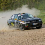 Den Ehrenplatz allerdings erkämpft sich ein Team, das keiner auf dem Podium erwartet hat: Herbert Lösch und Lara Quast im Mitsubishi Evo 8. Der 61-jährige Unternehmer aus Mittelfranken hat nach über 30 Jahren Rallyepause erst im letzten Herbst wieder hinterm Lenkrad Platz genommen. Mit dem von Michael Ehrle vorbereiteten Evo 8 und dessen Tochter Lara auf dem heißen Sitz sorgt er mit der zweitschnellsten Zeit auf der „Apostelbrücke“ für einen Paukenschlag und fährt nach weiteren vier zweitbesten Zeiten als Zweiter ins Ziel.